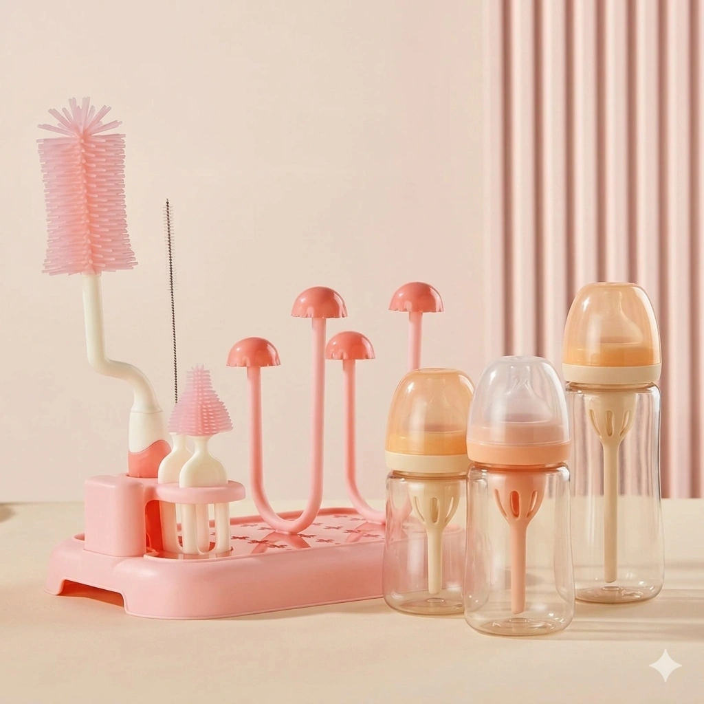 Keep your baby’s feeding essentials clean, hygienic, and organized with the Baby Bottle Brush with Drain Rack from MeroBaby. Designed for modern parents, this all-in-one cleaning set makes bottle washing easier, faster, and more efficient while ensuring every part of the bottle is thoroughly cleaned.