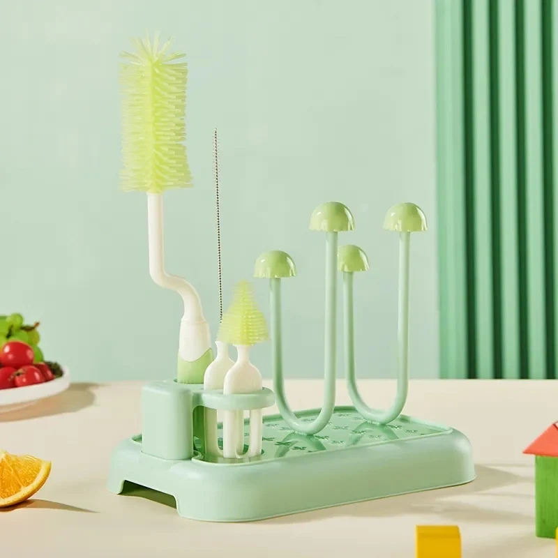 The soft yet durable bristles gently clean bottles without scratching, reaching deep into corners for a complete wash. The included drain rack allows bottles, nipples, and accessories to air-dry hygienically, preventing water buildup and keeping everything neatly arranged.
