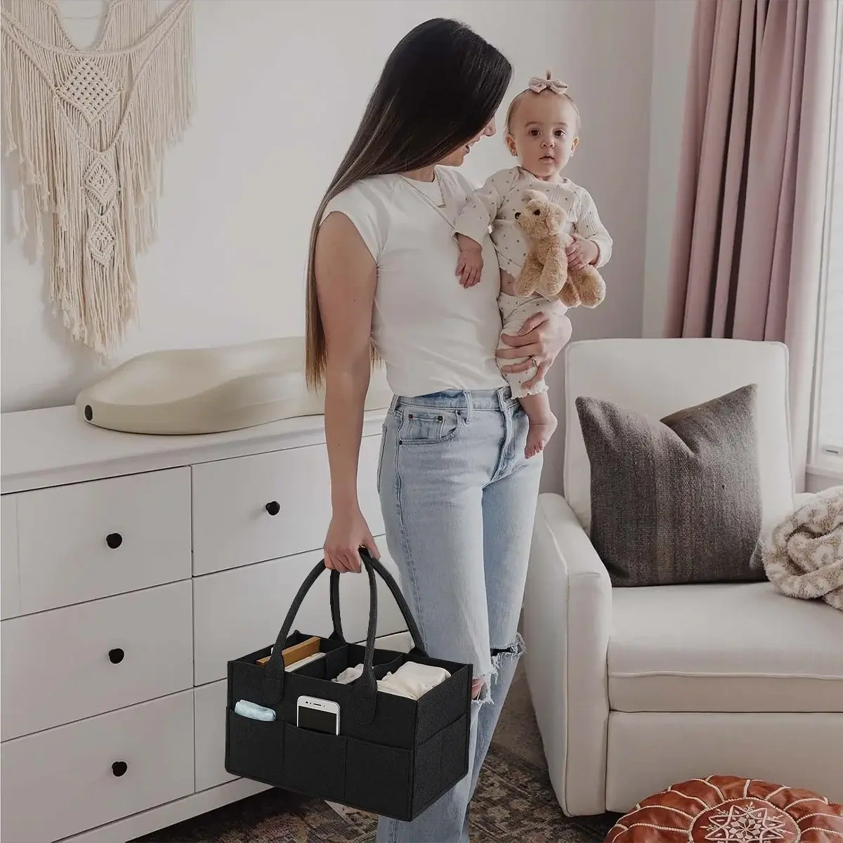 No more searching for baby essentials during urgent moments. This caddy keeps everything in one place, saving time and keeping your routine smooth and organized.