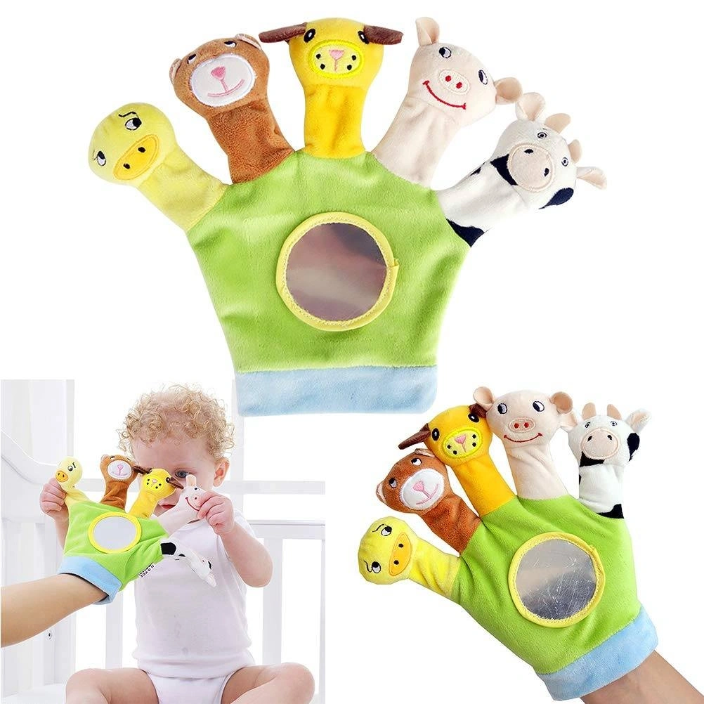 This colorful animal finger puppet glove is an interactive sensory toy designed to spark imagination and strengthen the bond between parents and babies. Featuring five charming animal characters and a built-in safety mirror, it turns every playtime into a captivating storytelling session.